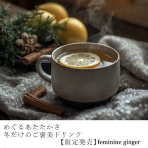 今年の冬は、身体の芯から温めるケアを。 フェミニンシリーズより冬限定フェミニンジンジャーが登場します。 数量限定❣❣ 3袋ご予約で【限定タンブラー】プレゼント🎁 今回のフェミニンジンジャーは、 フェミニンマスターの”女性に嬉しいサポート成分”に加え、 金時...