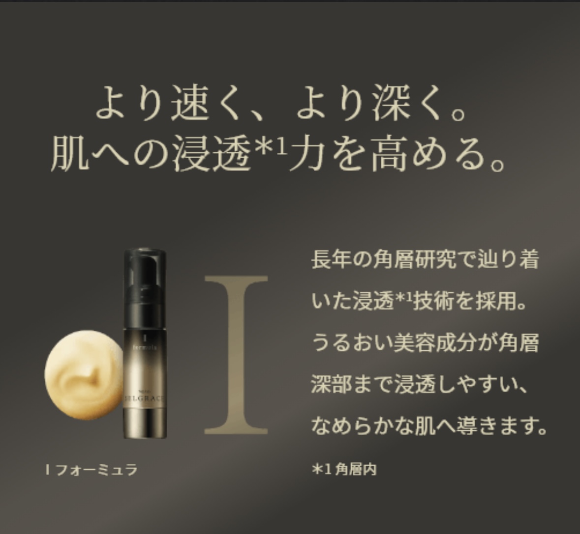 「Iフォーミュラ」を使用した後に、「IIフォーミュラ」を使用。<受け入れて応えられる肌へ。ジェル状の「Iフォーミュラ」がみずみずしく肌を潤し、セラム状の「IIフォーミュラ」がやさしく肌を包み込みます。